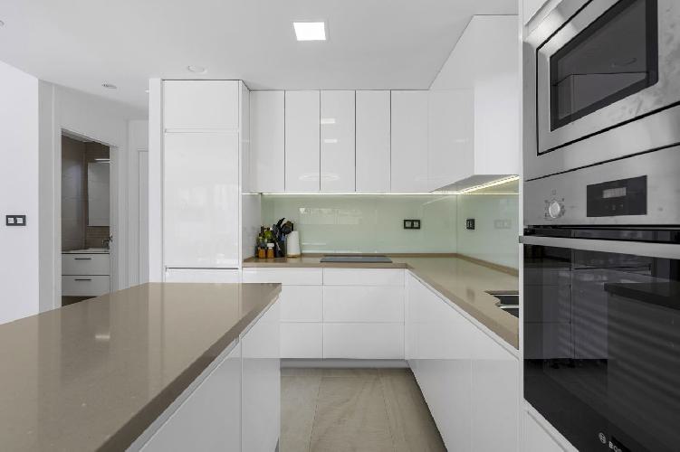 Die Küche ist gut ausgestattet und verfügt über eine praktische Kücheninsel, die als perfekter Treffpunkt dient, wenn Familie und Freunde zu Besuch sind. Küche und Essbereich verschmelzen zu einem großen, gemütlichen Raum.