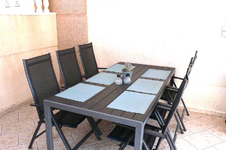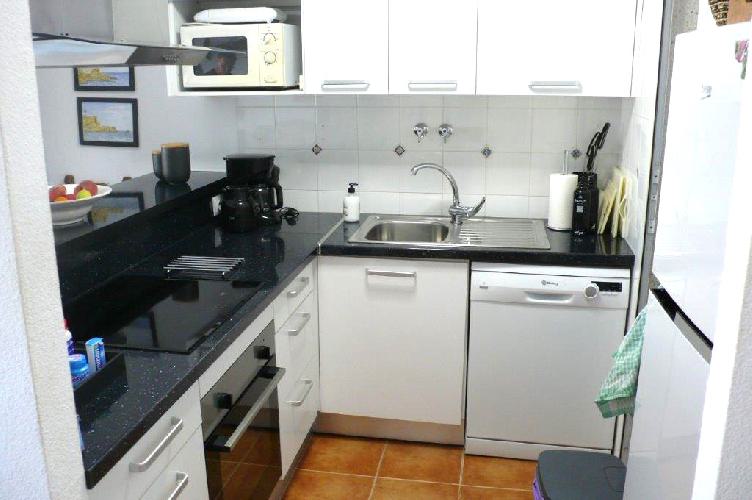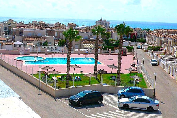 | Acogedora casa adosada esquinera, tipo dúplex, en venta en Altos de Bahía. El complejo residencial está completamente vallado con dos portones automáticos y cuenta con cuidadas zonas verdes con piscina comunitaria y aparcamiento. La casa ofrece un jardín esquinero de 35 m² con orientación sur. Dispone de un trastero y varias zonas de estar cubiertas. La planta baja consta de salón-comedor, una moderna cocina totalmente reformada con trastero y un aseo de invitados. La primera planta se distribuye en dos dormitorios y un baño. La segunda planta ofrece una azotea de 15 m² y vistas despejadas al mar y a la piscina comunitaria. La casa se ofrece completamente amueblada. Se encuentra en una zona tranquila, a poca distancia a pie de numerosos centros comerciales y playas. ¡Una oportunidad única a un precio asequible! |