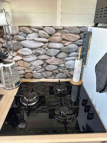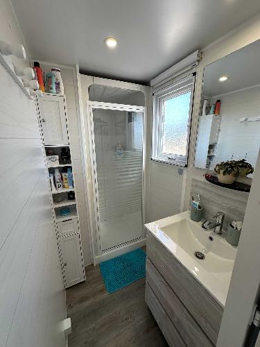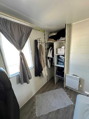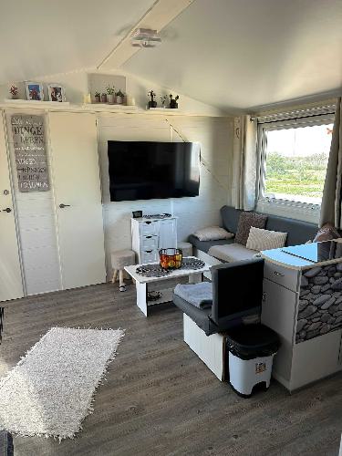 Mobilboligen har to soverom, et toalett, et separat dusjrom og en stue med åpen kjøkkenløsning. Den har klimaanlegg/oppvarming i stuen og ekstra elektriske radiatorer på soverommene. En stor utendørsterrasse går langs hele mobilboligens lengde, rett utenfor inngangen.