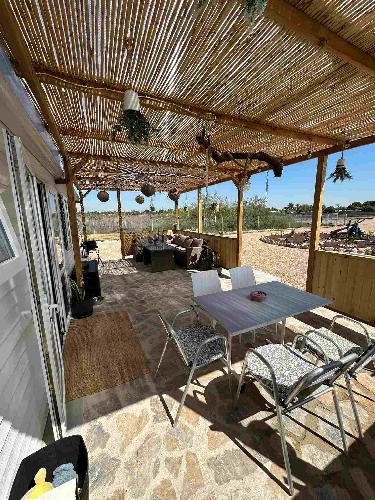 En stor tomt i landlige omgivelser med en mobilbolig og en campingvogn. Eiendommen er klar for umiddelbar innflytting. Den ligger i et rolig, men sentralt boligområde. Byene La Hoya, Elche og La Marina ligger alle innen 5-10 minutters kjøretur.